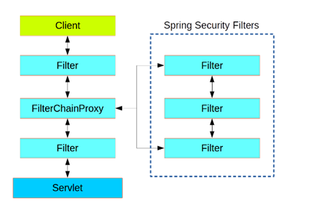 - Servler이전 FilterChain실행중, springSecurityFilterChain 에 도달하면, DelegatingFilterProxy클래스는 FilterChainProxy 클래스에게 처리를 위임.